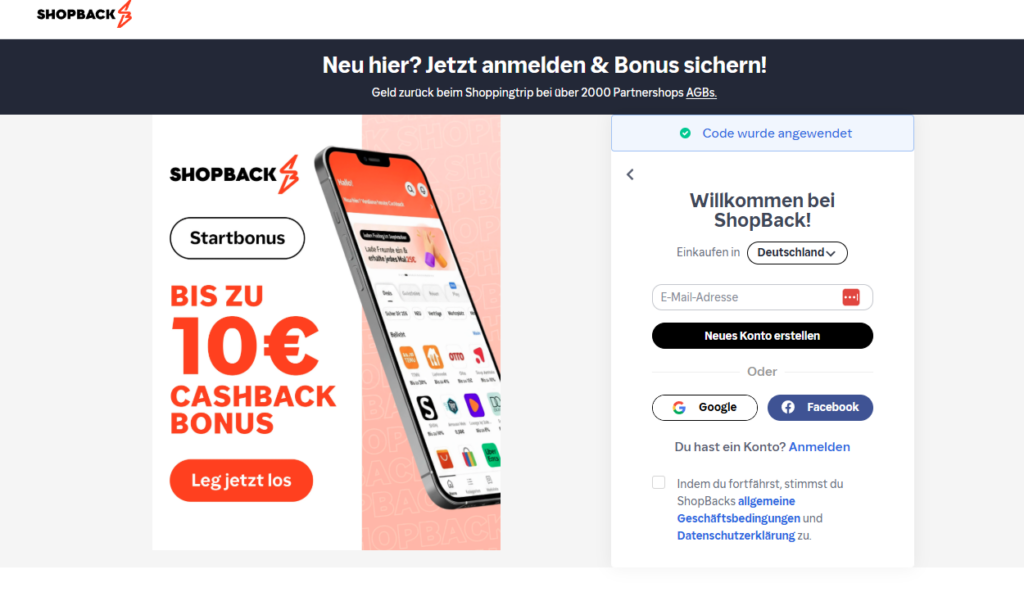 Der Registrierungsbonus ist ein Neukundenangebot, das ShopBack regelmäßig im Rahmen von Aktionen anbietet. Die Höhe kann variieren (z. B. 5 €, 8 € oder bis zu 10 €) und ist an Bedingungen geknüpft. In der Regel wird der Bonus nach dem ersten qualifizierten Einkauf gutgeschrieben.