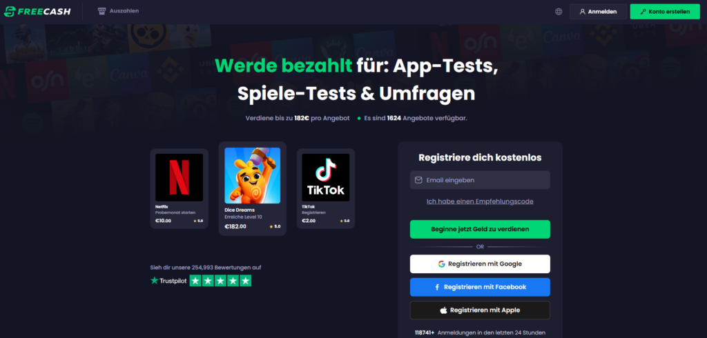 Freecash ist eine seriöse Plattform, um online nebenbei Geld zu verdienen. Die Seite eignet sich besonders für Nutzer, die: